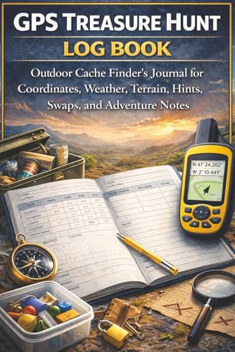 GPS Treasure Hunt Log Book: Outdoor Cache Finder’s Journal for Coordinates, Weather, Terrain, Hints, Swaps, and Adventure Notes