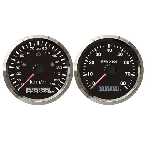 ELING 85 mm mätanordning, set 0–160 km/h, GPS-hastighetsmätare, odometermätare med 8 000 varv/min, varvtalsmätare 12 V 24 V med bakgrundsbelysning för bil, husbil, limousin