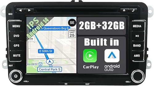 Camecho Android bilradio för VW GPS-navigering 7 tum HD-pekskärm, Bluetooth, AM/FM-mottagare spelare för Passat Golf Jetta EOS POLO Seat