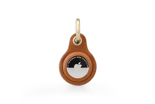 Habac Studio Airtag nyckelring äkta läder med mässings nyckeletiketter. Apple Airtag-hållare för bagage, GPS-spårare, hund- och Airtag-fodral, nyckelorganisatör. Nyckelring GPS-tagg (brun)