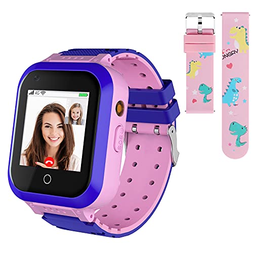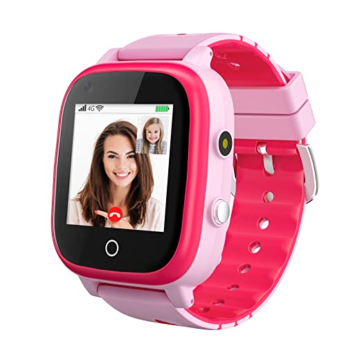 4G smartklocka för barn, vattentät barnsmartklocka med GPS-spårare, samtal, larm, stegräknare, kamera, SOS, pekskärm WLAN Bluetooth-armbandsur pojkar flickor (rosa – T5)