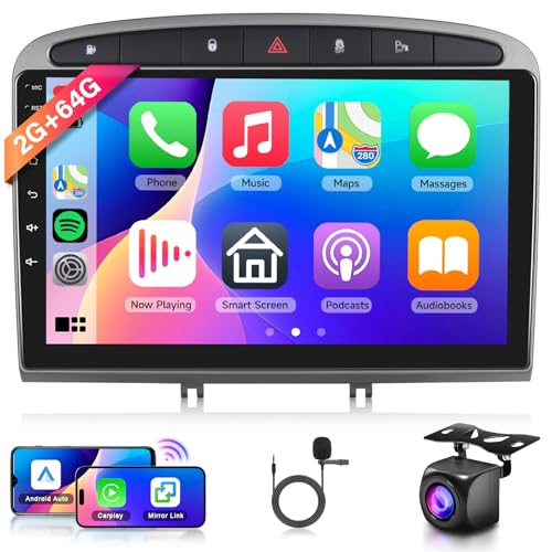 2G 64G Android 13 bilradio för Peugeot 308 408 2007-2015 9 tum pekskärm bilradio med trådlös carplay android bil fartyg GPS spegellänk Bluetooth FM/RDS-radio WiFi USB bakkamera