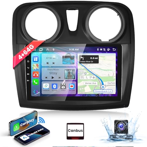 【4G+64G】Podofo 9 tum bilradio Bluetooth för Renault Dacia SANDERO II B52 2012–2019 Carplay Android bil trådlös, 1280 x 720,8-kärnig Android Radio 2 din med pekskärm GPS GPS RDS/FM DSP AHD backkamera