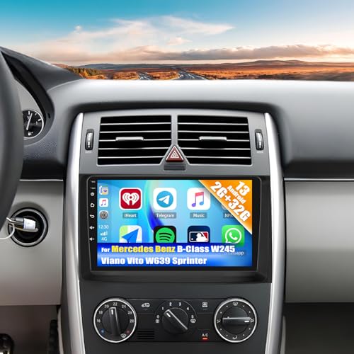 2G + 32G CAMECHO Android 13 bilradio med GPS för Benz B-klass W245 Viano Vito W639 Sprinter, 9 tum radioskärm med Carplay Android Auto Mirror Link WiFi RDS/FM Bluetooth och EQ