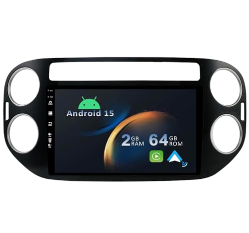 YUNTX Android 14 2 Din Radio Navigation för Volkswagen Tiguan 2009-2017: [Integrerad CarPlay/Android Auto/GPS] -IPS 2.5D 9 Tum Pekskärm-DAB/Bluetooth 5.0/Ratt Kontroll/Mirror-Link
