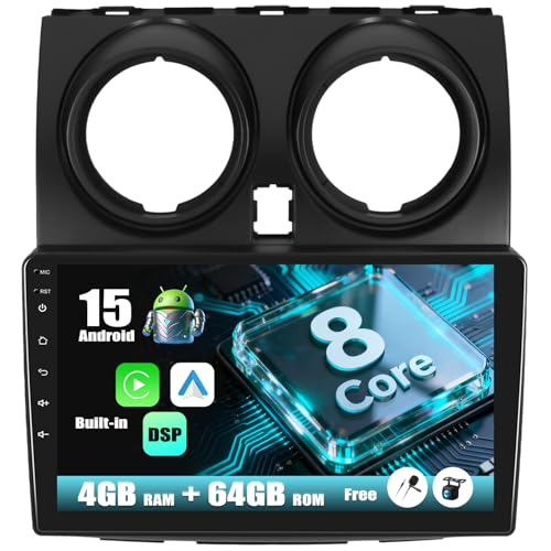 SIXWIN 8 Core 4+64G Android 15 bilradio för Nissan Qashqai J10 2006-2016 med CarPlay/Android Auto/DSP, 9 tum HD GPS WiFi Bluetooth 5.0 USB FM RDS Radio Mirror Link 32 band EQ+kamera