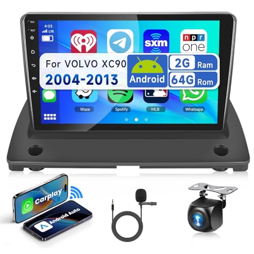 【2+64G】Podofo 9 tum bilradio för Volvo XC90 2004–2013 trådlös Carplay Android bil, Android 13-radio 2 Din med Bluetooth WiFi GPS HiFi RDS/FM AHD backkamera/DVR/Canbus