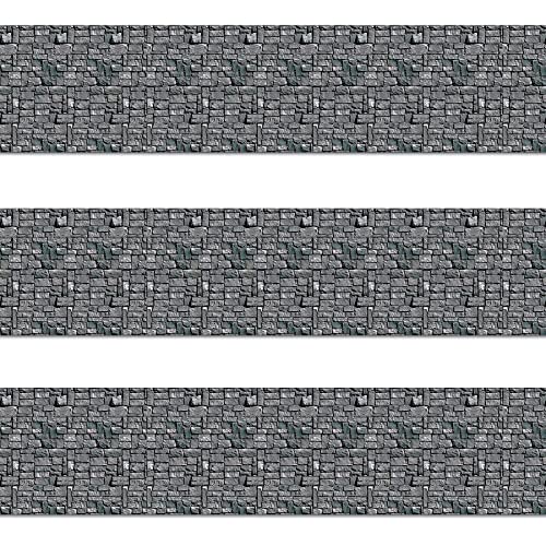 Beistle S00911AZ3 3-delad stenvägg fotobås bakgrund för glad halloween festtillbehör, medeltida temadekorationer, plast, grå