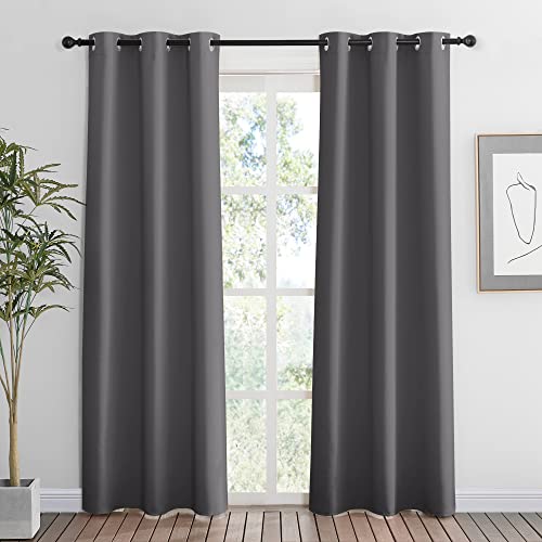 RYB HOME Grå mörkläggningsgardiner 213 cm längd 2 paneler set, kraftiga fönstergardiner draperier rum mörkläggning privat bakgrund för garage sovrum matsal, 107 cm bredd x 213 cm längd
