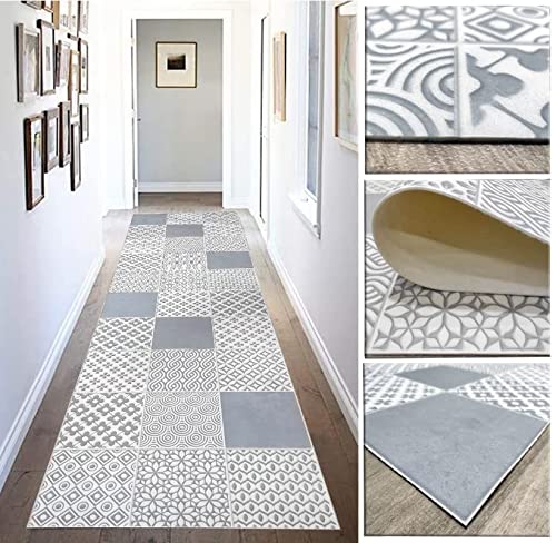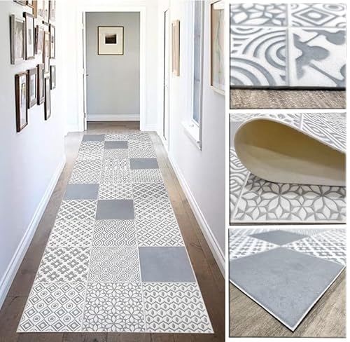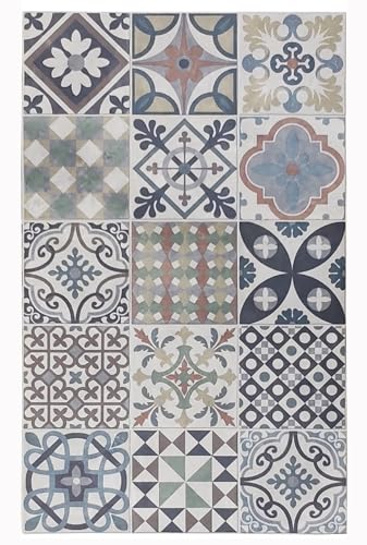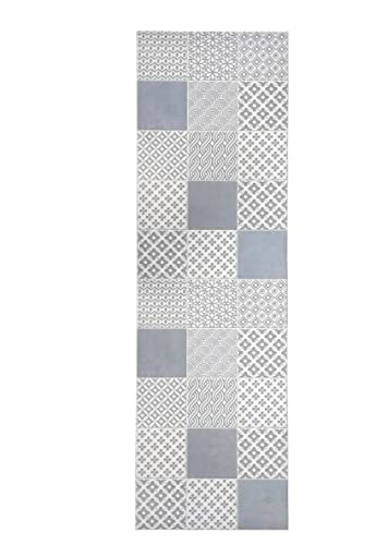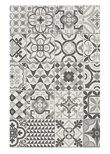 Realistiska Hydraulisk Kakel Vinyl Matta, Taupes och Grå Färger på Elfenben Bakgrund för Kök, Hall, Badrum, Sovrum med Textil Baksida.
