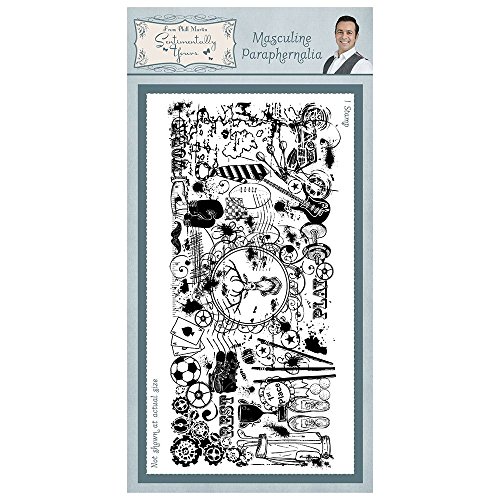 Sentimentally Yours av Phill Martin maskulin parafernalia kollage bakgrund gummistämpla, grå, 10 x 21 x 0,8 cm