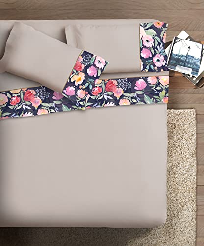 Set med lakan för mellanstor säng, tillverkad i Italien, mikrofiber – set med resårsäng, underlakan 120 x 200 cm, överlakan och örngott, bakgrund