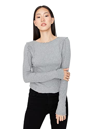 Trendyol Dam dam anpassad standard rundhalsad stickad blus skjorta, grå, XS, Grått, XS