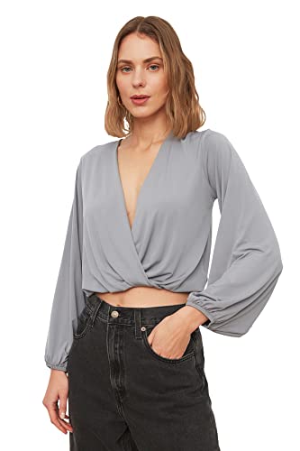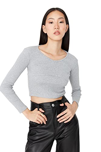 TRENDYOL Dam krympning detaljerad flyillated crop stickad blus blus, grå, L