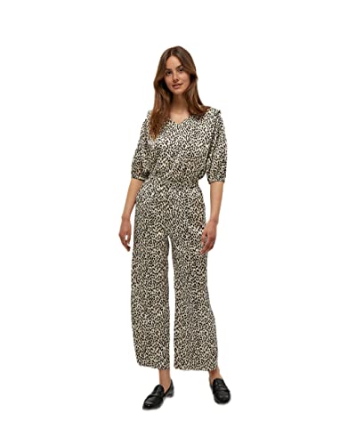 KAFFE Dam blus lös passform långa ärmar V-notch hals tryckt topp elastisk häl, Svart/fjäder grå lejon, 36