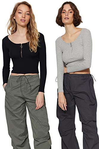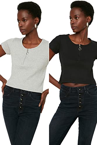 Trendyol Dam svart och grå dragkedja detaljerad flyillat 2-pack stickad blus blus, svart-grå, stor