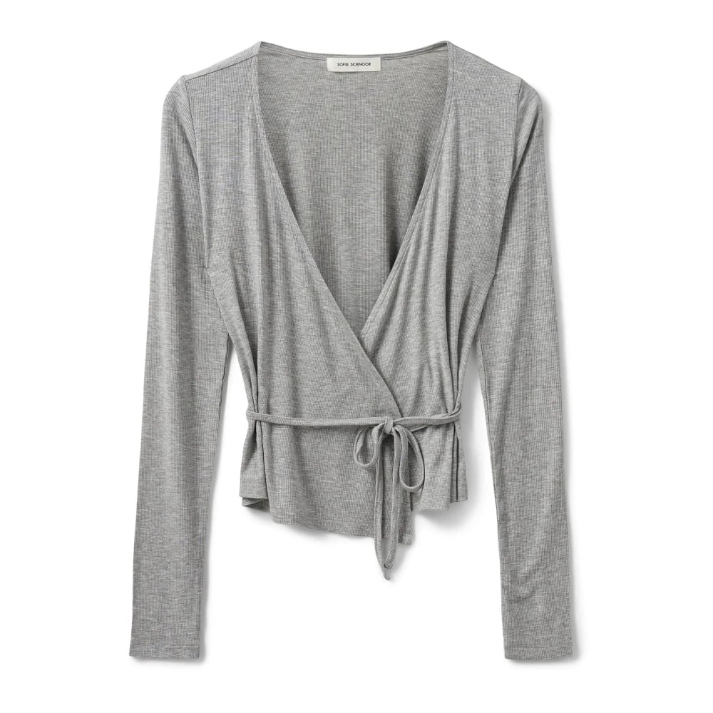 Sofie Schnoor, Blusar & Skjortor , Dam, XS, Spandex, Wrap Blus Grå Melange Stilren