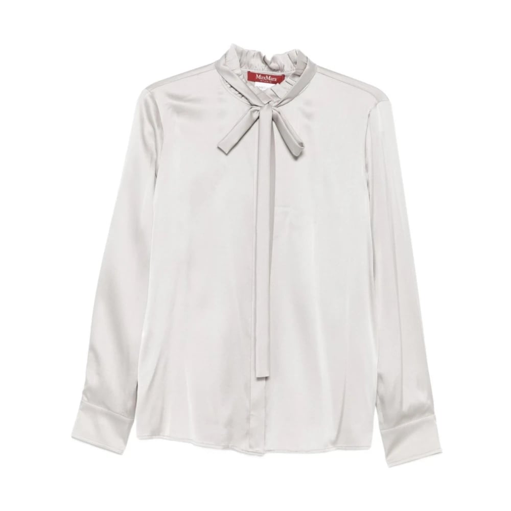 Max Mara Studio, Blusar & Skjortor , Dam, L, Ruffled Neck Blus Grå Skjorta