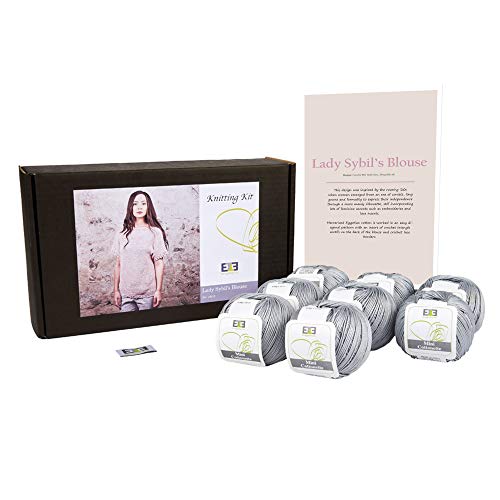 DesignEtte Stickningskit dam sybils blus ren egyptisk bomullsgarn grå stor No-s-9915, L