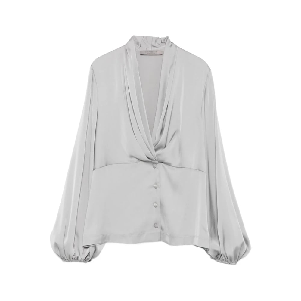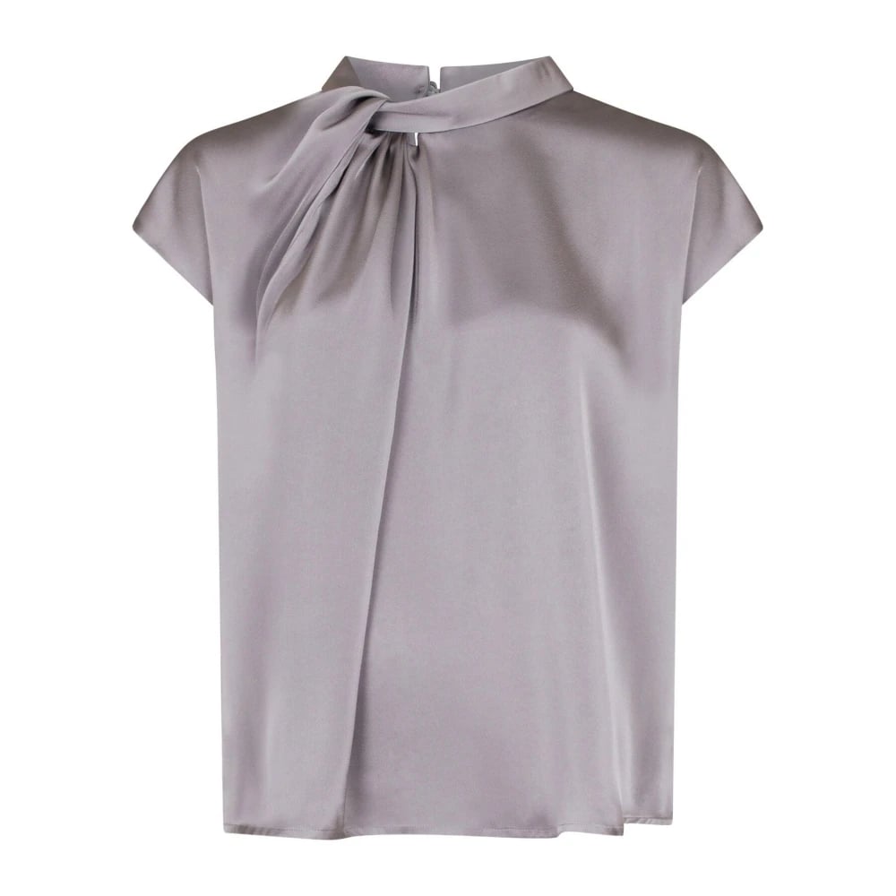 Neo Noir, Blusar & Skjortor , Dam, S, Varm Grå Sateen Blus med Draperade Detaljer