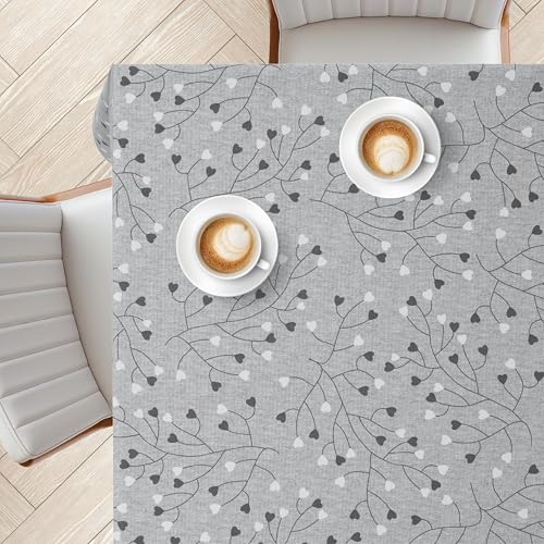 BELUM | Hartad bordsduk (Mjukgjord takt) 140x140 cm Fläckfri Modell Tweety 2 Grå; Bordsduk, vaxduk, Bomull