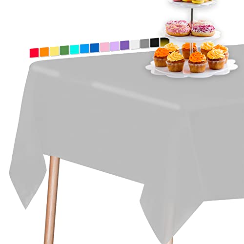 PartyWoo Grå bordsduk, 137 x 258 cm rektangulär festbordsduk, plastbordsduk för 15 till 21 cm bord, plastbordsskydd, vattentät bordsduk för fest, födelsedag, bröllop (1 pack)