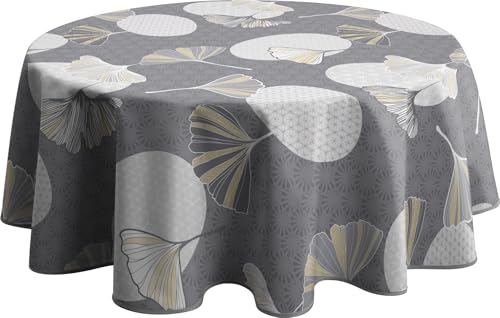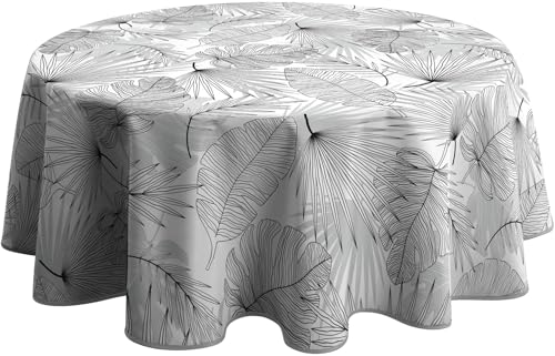 Simurq Bordsduk tvättbar – vattenavvisande | rund 140 linnetryck | lättskött och fläckbeständig | grå – bordsduk bordsduk duk