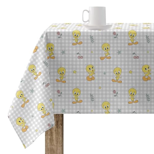 BELUM | Hartad bordsduk (Mjukgjord takt) 250x140 cm Fläckfri Modell Tweety 2 Grå; Bordsduk, vaxduk, Bomull