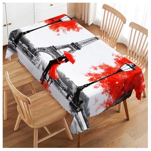 Swono Paris bordsskydd 132 x 178 cm Frankrike Eiffeltornet parparaply torkbar bordsduk kök middag bordsdekoration, röd grå bordsduk för utomhus- och inomhusbruk