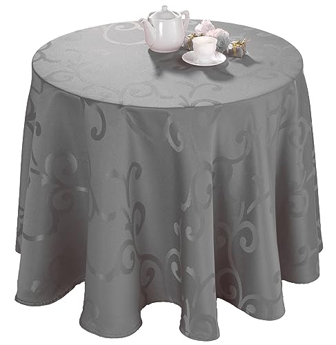 Rund duk - Ø140 cm - Grå duk - Jacquardvävd bordsduk - Exklusiv festduk
