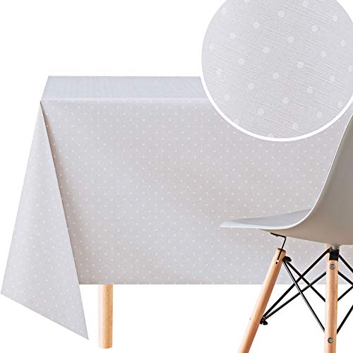 KP HOME Torka ren bordsduk grå med vitt PVC-bordsskydd – rektangel 200 x 140 cm – torkbar vinylplastbordsduk med prickigt tryck