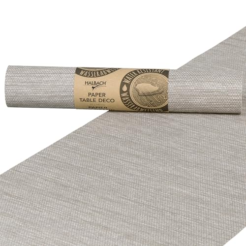 Halbach sidenband pappersbord | bredd 25 cm längd 1,80 m | modern bordslöpare tvättbar, bordsdekoration utomhus väderbeständig | färg: grå