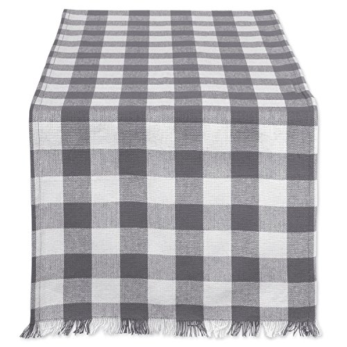 DII Bordskollektion, rutig, bordslöpare, 100% bomull, maskintvättbar, 35,5 x 183 cm, grå