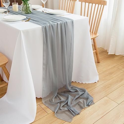 CHUQING Bordslöpare grå chiffong bord löpare bröllop tyg tyll boho Table Runner bordsdekoration löpare bord, 75 cm x 3 m