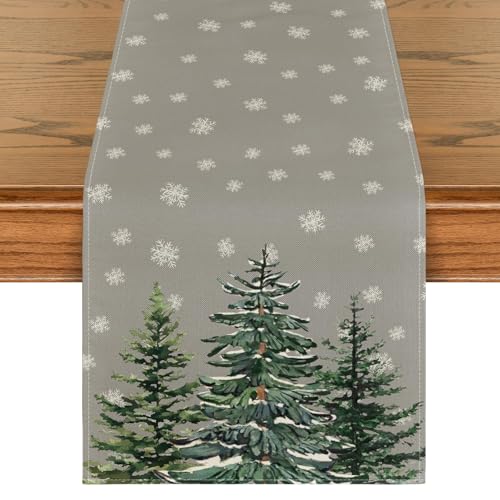 Artoid Mode Bordslöpare, med granar och snöflingor, säsongsbetonad, för vinter, kök, bordsdekoration för inomhus, för fest och semester, 40 x 180 cm, grå