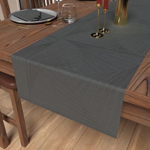 Sidorenko Modern bordslöpare av antracit – 150 x 40 cm – tvättbar bordsduk med läderetikett – skandinavisk bordsbanddekoration – bordsfiltlöpare för utomhusbruk – grå