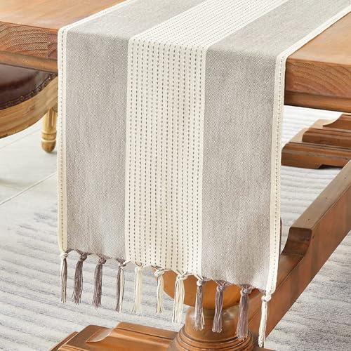 LOMOHOO Rustik Bordslöpare 94 Tum Lång Boho, Bondgård, Flätad Randig Soffbordslöpare för Middagsfest Semester (30 x 240 cm, Grå)