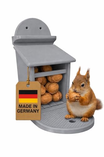 Matstation för ekorre – grå, väderbeständig och robust med plastskiva, ventilerat förvaringsfack och halkfri sits – för trädgård eller balkong