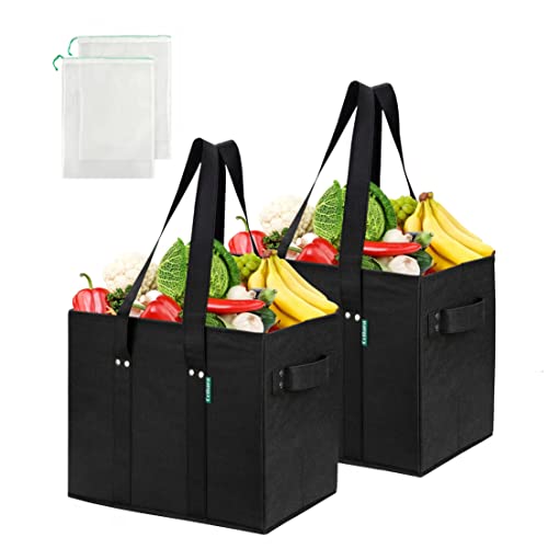 COTTARA Premium shoppingväska vikbar 3-pack – robust återanvändbar shoppingkorg med vikbar förstärkt botten inkl. 3 x frukt- och grönsaksnät – 38 x 23 x 31 cm grå, Svart uppsättning av 2, 38 x 23 x 31