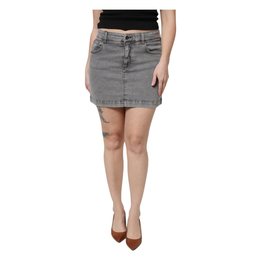 Dolce & Gabbana, Kjolar , Dam, S, Bomull, Grå Mini Kjol i Bomullsstretchdenim