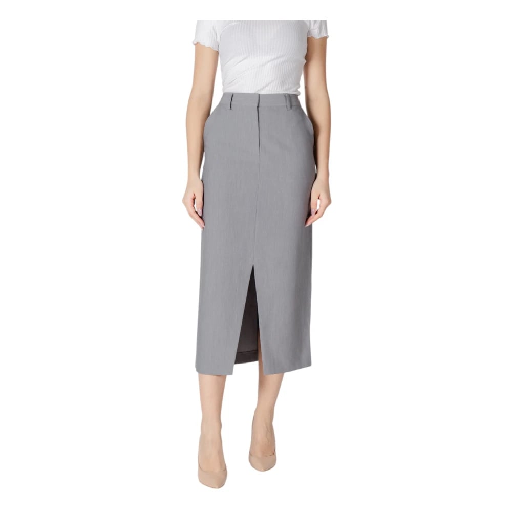 Ichi, Kjolar , Dam, XS, Polyester, Grå Dragkedja Kjol med Fickor