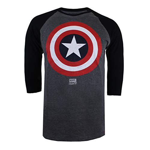 Marvel Captain America-Shield-logotyp för män långärmad topp, Grå (mörk ljung/svart Dhb), XL