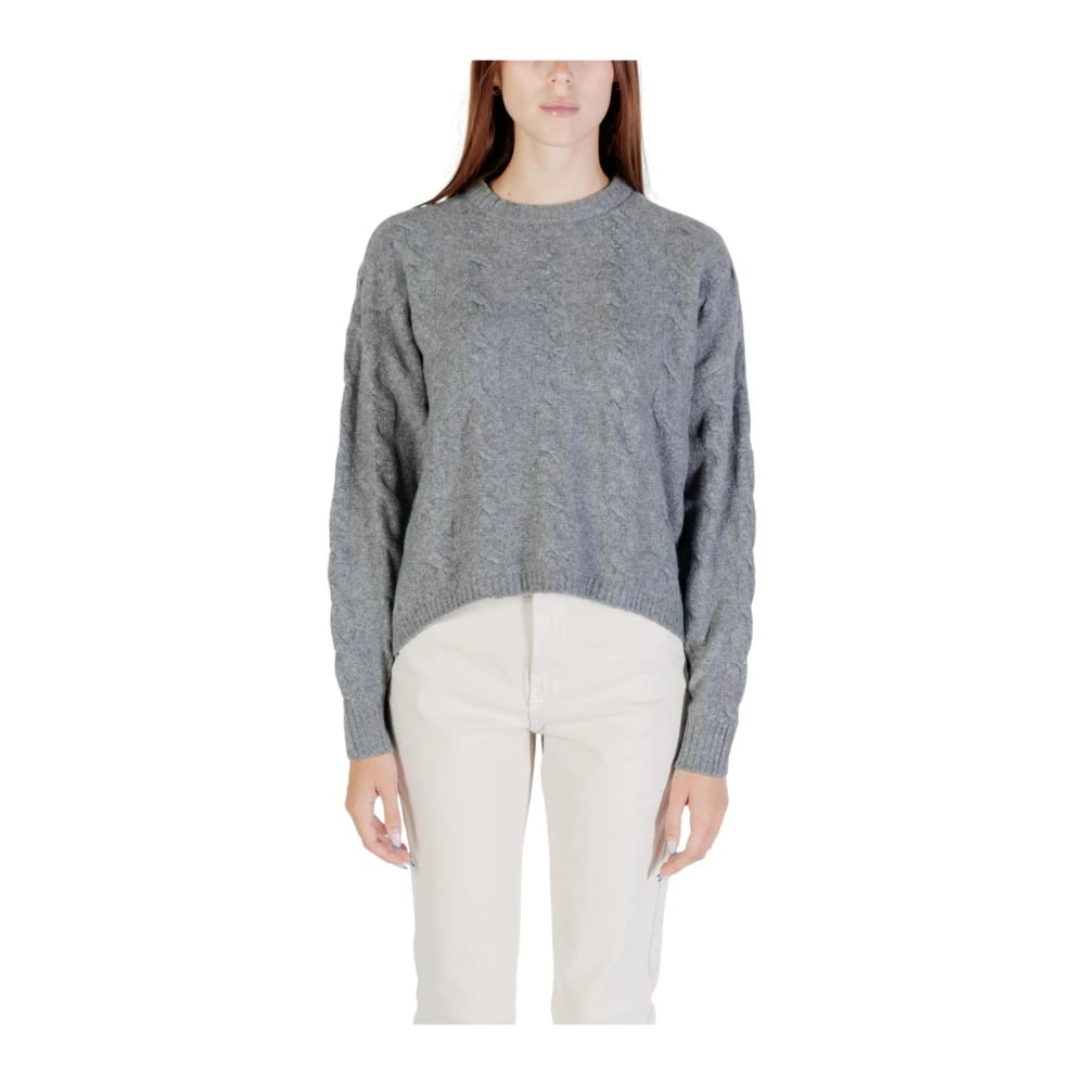 Only, Stickade Tröjor , Dam, S, Polyester, Grå Långärmad Stickad Tröja