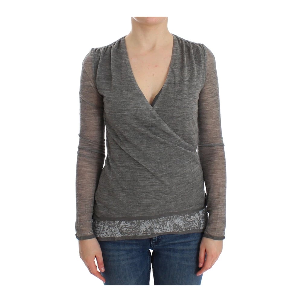 Ermanno Scervino, Stickade Tröjor , Dam, M, Polyester, Grå Ullblandning Stretch Långärmad Tröja