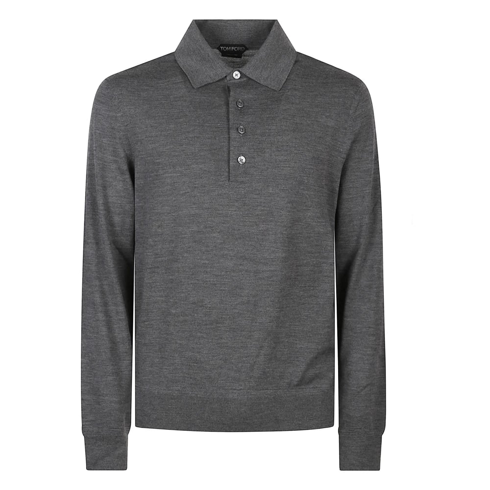 Tom Ford, Stickade Tröjor , Herr, L, Grå Polo Tröja Långärmad