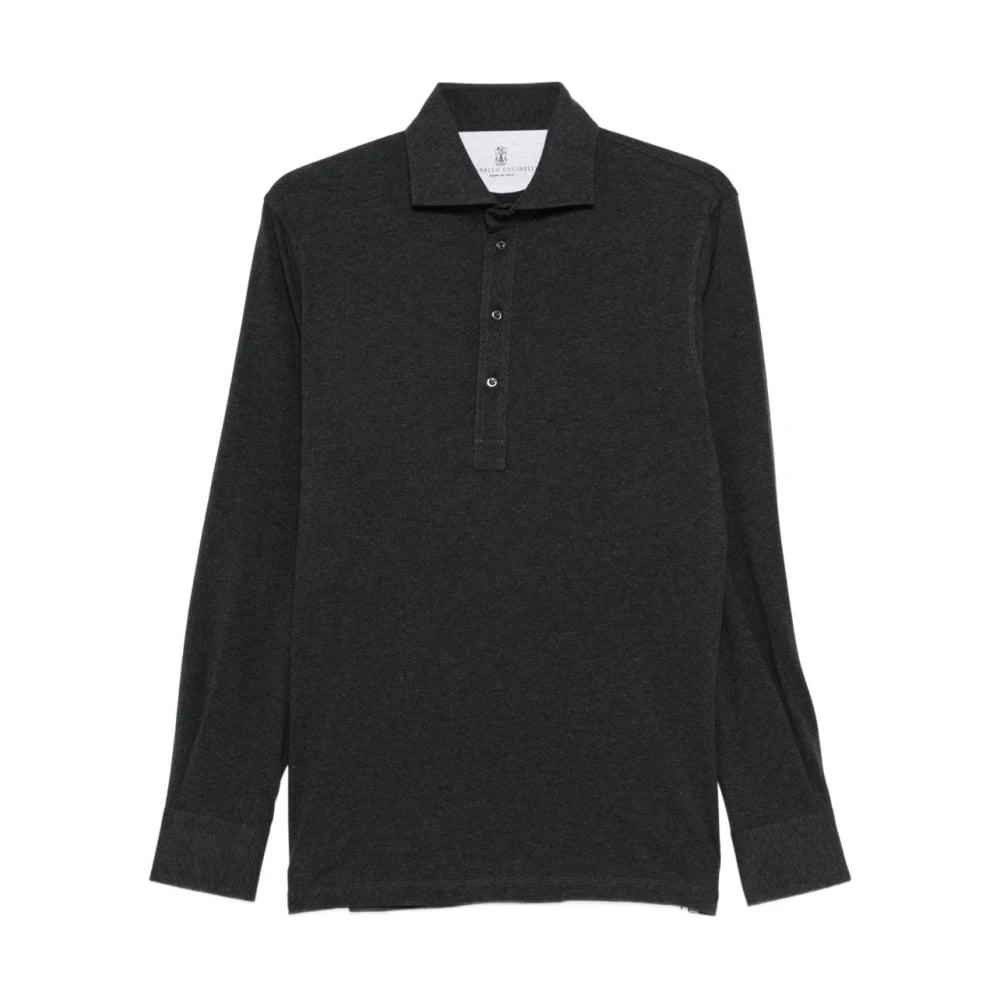 Brunello Cucinelli, Toppar , Herr, S, Grå långärmad polotröja