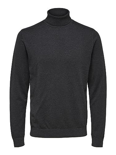 SELECTED HOMME tröja för män långärmad polotröja, Grå (Antracit/melange), XXL