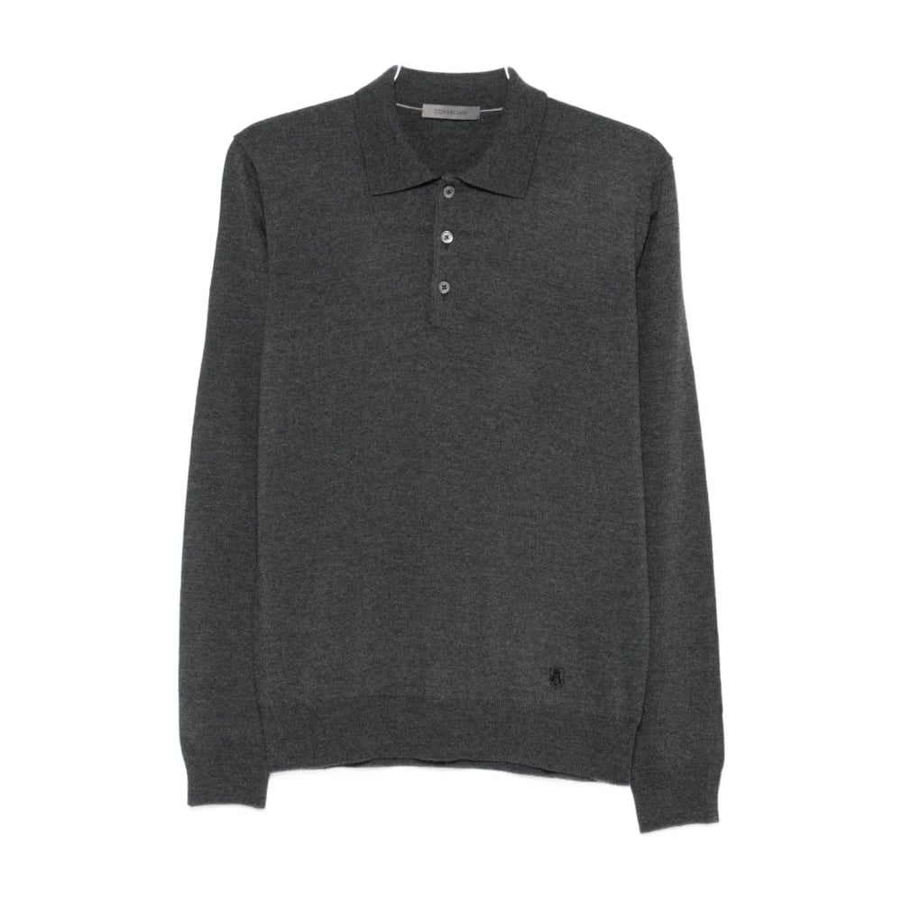Corneliani, Toppar , Herr, 2Xl, Grå ull långärmad polotröja