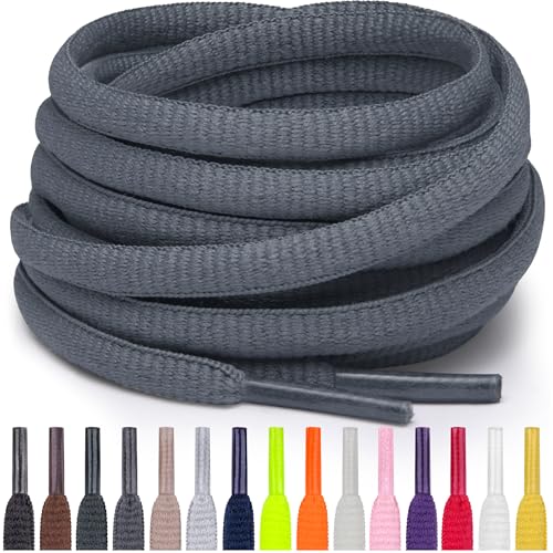 Miscly Platta Skosnören för alla typer av Skor och Sneakers (Grå, 114 cm)