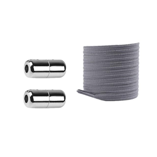 5 par fria elastiska platta skosnören med silverspännen Grå